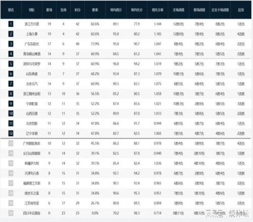 CBA积分榜